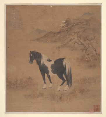 (Horse and Landscape (album leaf; color on silk))Qing Dynasty Chinese School |