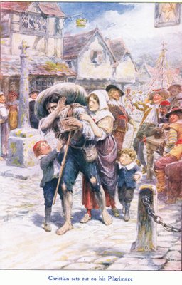 Cristiano parte per il suo pellegrinaggio (litografia a colori)(Christian sets out on his Pilgrimage (colour litho))Robert Ambrose (after) Dudley |