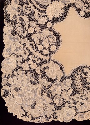 Fazzoletto di pizzo di manifattura irlandese, presentato con altri tessuti di pizzo dalle Dame d'Irlanda (cromolitografia)(Handkerchief of lace of Irish manufacture, presented with other lace fabrics by the Ladies of Ireland (chromolitho))Robert Dudley |