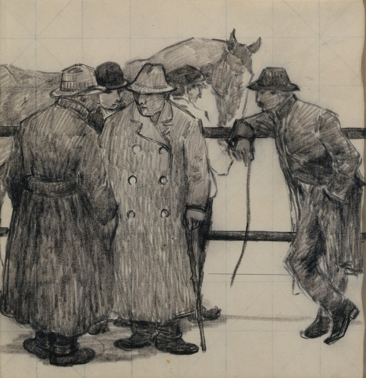 Studio per i commercianti di cavalli, c.1917(Study for the Horse Dealers, c.1917 (pencil on squared paper))Robert Polhill Bevan |