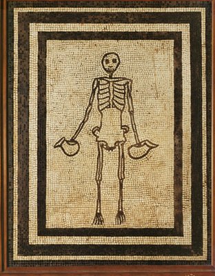 Arte romana: scheletro che tiene due brocche. Mosaico del I secolo. Napoli, Museo Archeologico Nazionale(Roman art: skeleton holding two jugs. Mosaic of the 1st century. Naples, museo nazionale archeologico - Roman art: skeleton holding two pitchers. Mosaic of the 1st century from Pompeii. National Archaeological Museum, Naples, Italy)Roman |
