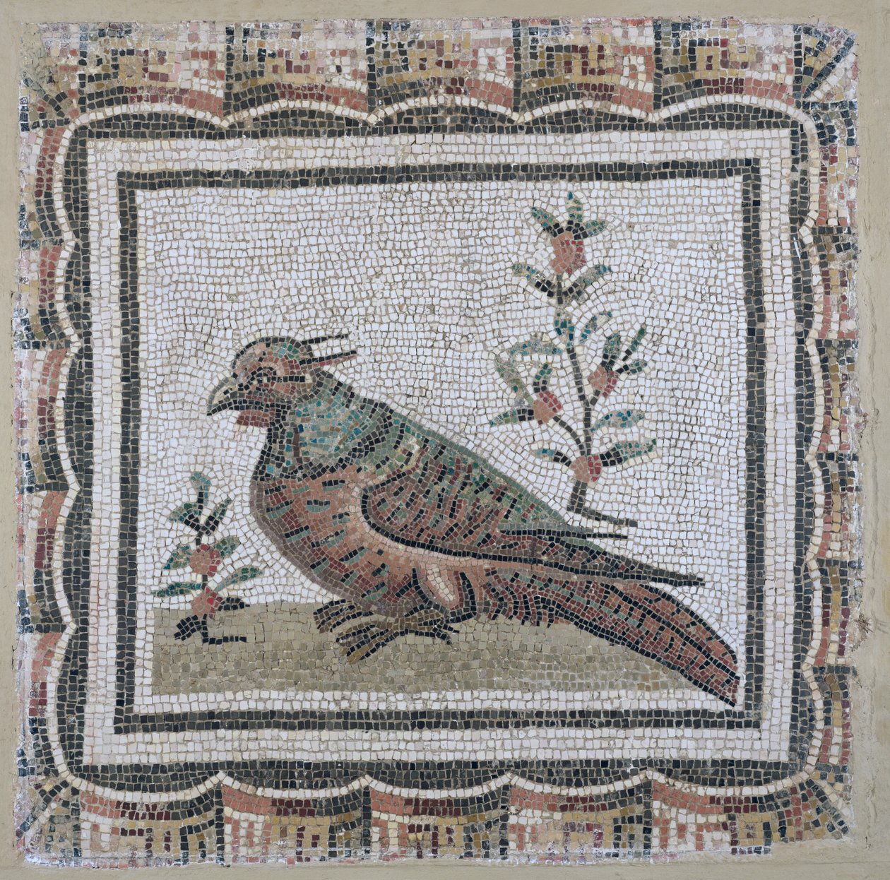 Pavimento raffigurante un fagiano(Pavement depicting a pheasant (mosaic))Roman |