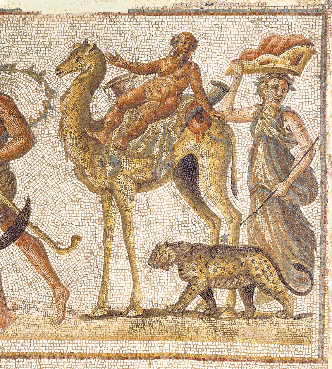 Processione Dionisiaca, da El-Jem Thysdrus (dettaglio di Sileno che Cavalca un Cammello)(Dionysian Procession, from El-Jem Thysdrus detail of Silenus Riding a Camel mosaic detail of 174324)Roman |