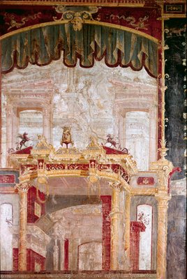 Decorazione(Roman Art: “” decor”” Roman fresco of the 4th Pompeian style from Ercolano (Herculanum or Herculaneum) 60-80 AD.)Roman |