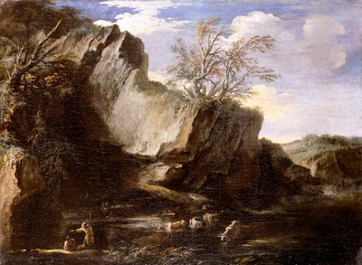 (Rocky landscape with herdsmen and cattle)Salvator Rosa |