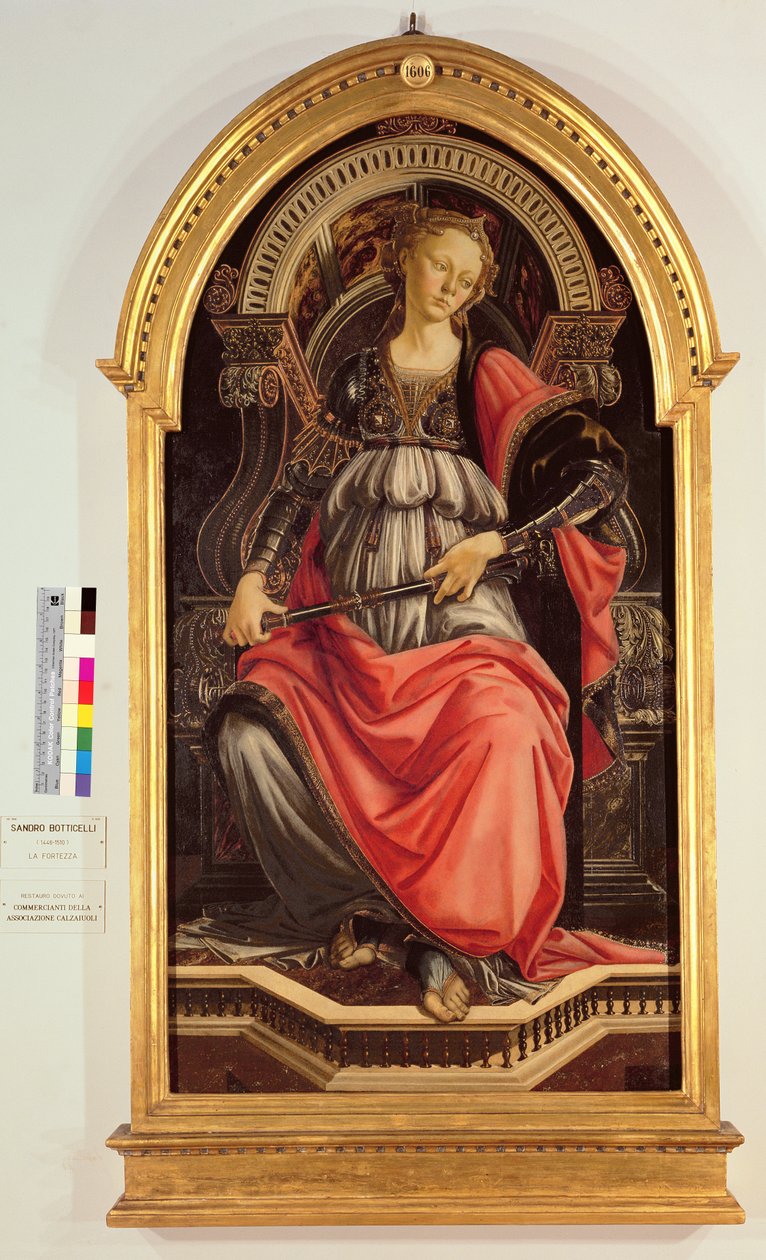 Fortezza (pannello delle Sei Virtù commissionato per la camera della Sala della Gilda dei Mercanti) 1470(Fortitude (panel from the Six Virtues commissioned for the chamber for the Merchant's Guild Hall) 1470 )Sandro Botticelli |
