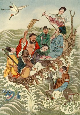 (The Eight Immortals crossing the sea (colour litho))School Chinese |