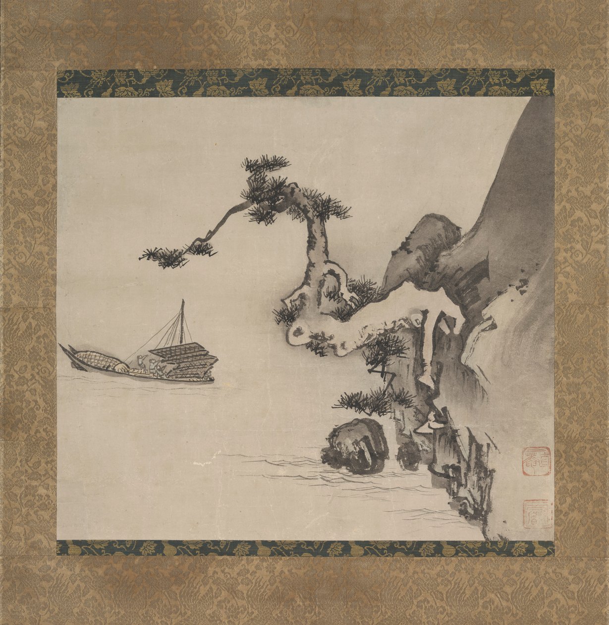senza data · Hanging scroll, ink and light color on paper, ivory rollers