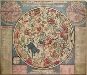 Carta dei cieli per la latitudine di Londra, Urania's Mirror o una vista dei cieli(Chart of the Heavens for the Latitude of London, Urania's Mirror or a View of the Heavens, c.1825 (card, paper, tissue, engraving))Sydney Hall |