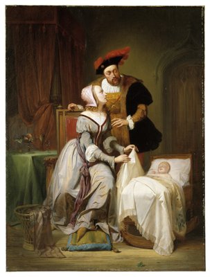 L'imperatore Carlo e la sua amante Johanna Van der Gheynst alla culla della figlia Margherita(Emperor Charles and His Mistress Johanna Van der Gheynst at the Cradle of their Daughter Margaret)Theodore Joseph Canneel |
