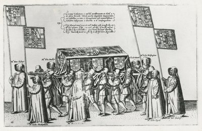 Il corteo funebre di Sir Philip Sidney verso la Cattedrale di San Paolo, 1587(The funeral cortege of Sir Philip Sidney on the way to St. Pauls Cathedral, 1587 )Theodore de Bry |