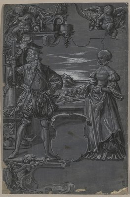 Progetto per vetrata: Uomo e Donna in ambientazione architettonica, seconda metà del 1500(Design for Glass Painting: Man and Woman in Architectural Setting, second half 1500s. )Tobias Stimmer |