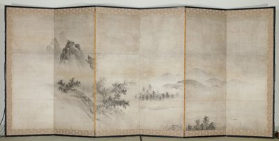 Paesaggio, inizio XVII secolo (coppia di paraventi a sei pannelli; inchiostro e oro su carta). carta)(Landscape, early 17th century (Pair of six-panel screens; ink and gold on paper))Togan Unkoku |