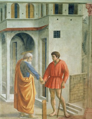 Il pagamento del tributo (dettaglio di San Pietro che paga il pubblicano)(Tribute Money St. Peter pays the Tax Collector - detail of 31642, c.1427 fresco)Tommaso Masaccio |