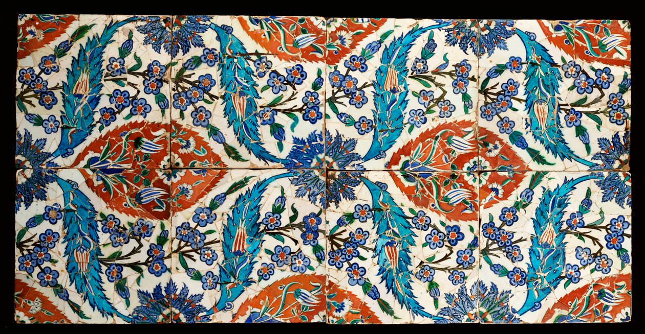 Otto piastrelle quadrate policrome composite di Iznik, c.1575(Eight composite Iznik polychrome square tiles, c.1575)Turkish School |