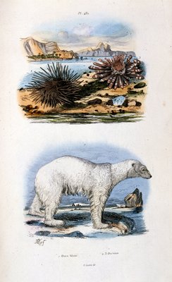 Orso polare, Ursus maritimus 1, riccio di mare commestibile, Echinus esculentus 2 e riccio di matita rossa, Heterocentrotus mammillatus 3(Polar bear, Ursus maritimus 1, vulnerable, edible sea urchin, Echinus esculentus 2 and red pencil urchin, Heterocentrotus mammillatus 3)Unbekannt |