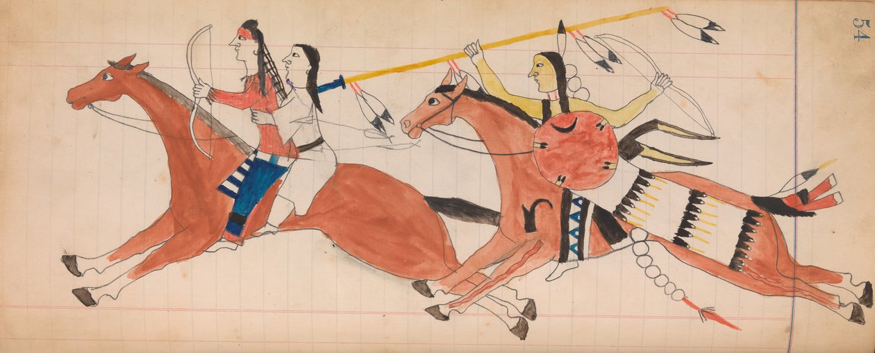 animale · femminile · donne · donna · la gente · maschio · uomo · uomini · animali · cavalli · cavallo · riding · rider · riders · indiano · arti · paese · locale · arte · uomo · arma · armi · museo · colore · nativo · nativo americano · indiani · horseman · horsemen · guerra · posizione · secolo · disegno · libro di esercitazione · schermo · concetto · indoamericano · arco e freccia · watercolour · guerra · cheyenne · archi e freccie · gli stati uniti di ameri · colore · venuto a contatto di · museo metropolitano d'arte · il museo metropolitano di arte · diciannovesimo secolo · armamento · diciannovesimo secolo · americano · gli s.u.a. · indigenous people · unknown · heritage art · maffet ledger · /Heritage Images |