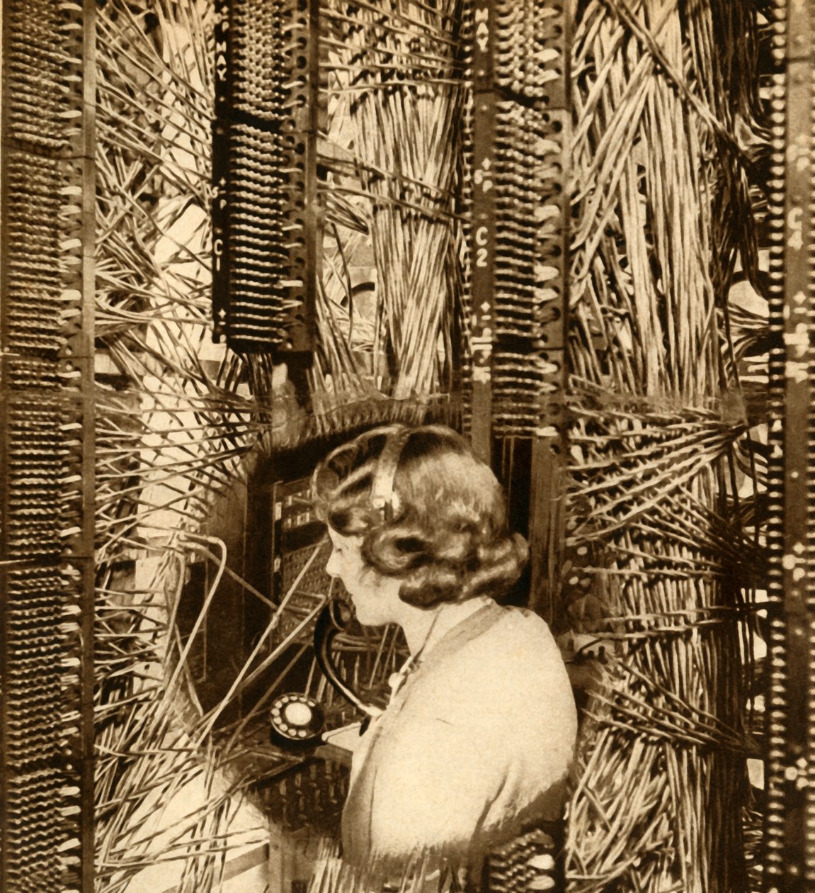 femminile · donna · la gente · lavoro · lavoro · tecnologia · comunicazioni · cavo · cavi · legare · occupazione · britannico · auricolari · innovazione · telecomunicazioni · secolo · legare · gran bretagna · professione · thirties · concetto · collegare · telephonist · telecomunicazione · operatore · 1930s · ventesimo secolo · photograph · unknown · white · odhams press ltd · henry e white · henry e · henry e.white · henry e. · mayfair telephone exchange · The Print Collector/Heritage Images |