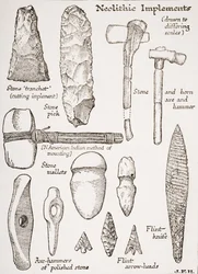 età di pietra · prehistoric · pietra · freccia · attrezzo · martello · arma · armi · corno · archeologia · coltelli · guerra · secolo · manufatto · concetto · neolithic · coltello · archeologia · manufatto · ascia · monocromo · guerra · maglio · attrezzo · sagittaria · diciannovesimo secolo · nero bianco · nero e bianco · armamento · diciannovesimo secolo · ann ronan pictures · woodcut · unknown · Ann Ronan Picture Library/Heritage-Images