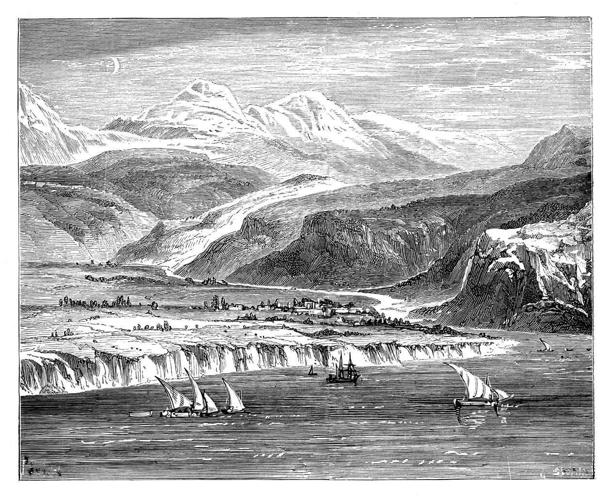 trasporto · trasporto · fiume · barca · barche · paese · geografia · guerra · posizione · victorian · secolo · concetto · monocromo · diciannovesimo secolo · nero bianco · nero e bianco · diciannovesimo secolo · alma · river alma · engraving · landscape · unknown · robert · wilson · robert wilson · The Print Collector/Heritage Images