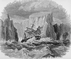 tempo · trasporto · trasporto · nube · nubi · oceano · mare · montagna · montagne · picco · la spagna · fumo · nave · navi · isola · geografia · vulcano · oceano atlantico · isole canarie · tenerife · posizione · secolo · monocromo · navigazione della nave · diciannovesimo secolo · nero bianco · nero e bianco · diciannovesimo secolo · engraving · landscape · unknown · robert · brown · robert brown · The Print Collector/Heritage Images |