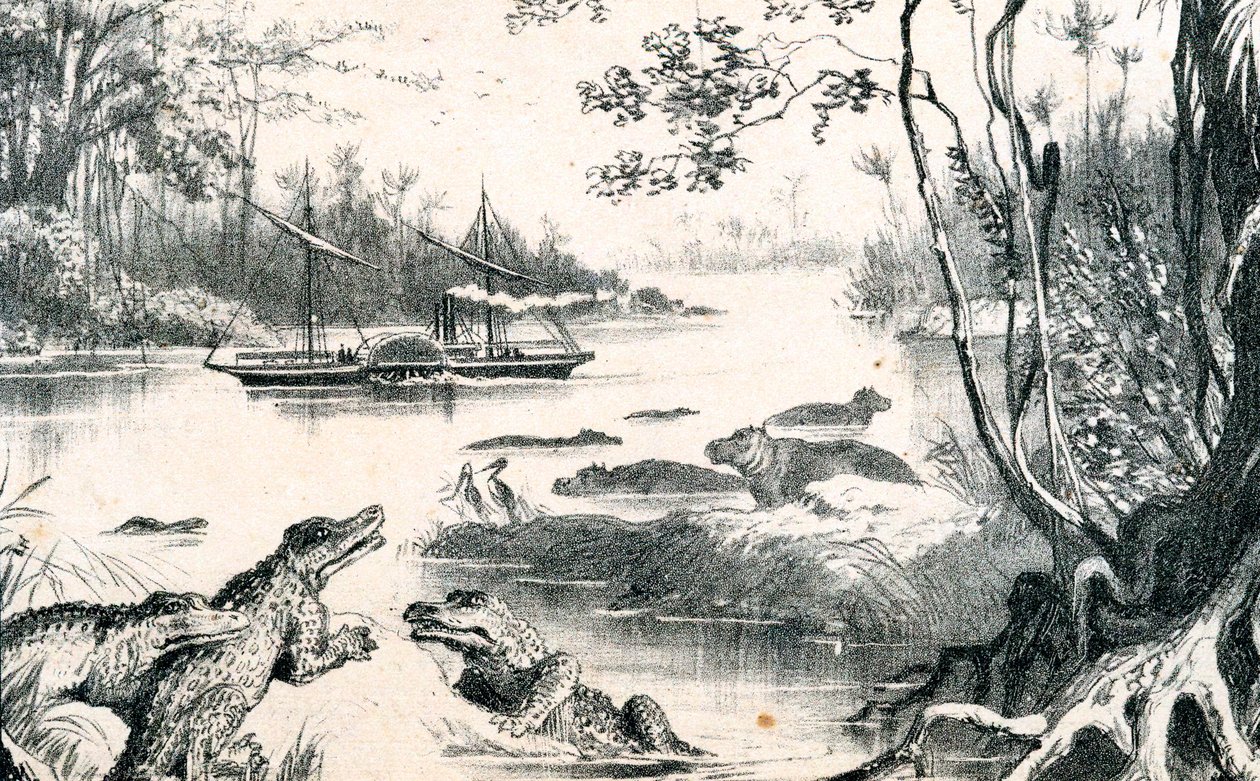 corsa · trasporto · trasporto · natura · animale · albero · lavoro · pianta · scoperta · paese · esplorazione · nave · navi · occupazione · giungla · britannico · viaggio · coccodrillo · vapore · la scozia · viaggiare · posizione · scozzese · secolo · gran bretagna · professione · esploratore · concetto · steamboat · monocromo · missionary · diciannovesimo secolo · nero bianco · nero e bianco · diciannovesimo secolo · scots · ann ronan pictures · david livingstone · david · lithograph · zambezi · unknown · livingstone · dr david livingstone · dr livingstone · Ann Ronan Picture Library/Heritage-Images |