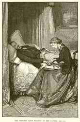 germania · tempo libero · femminile · donne · donna · la gente · maschio · uomo · uomini · contatto · famiglia · padre · figlia · tedesco · arti · paese · paternità · libro · uomo · lettura · ascoltare · britannico · letto · camera da letto · stanza · reale · posizione · victorian · secolo · gran bretagna · prendersi per mano · letteratura · sovranità · principessa · signora · papà · monocromo · principe · diciannovesimo secolo · nero bianco · nero e bianco · diciannovesimo secolo · princess alice · prince albert · albert · engraving · portrait · unknown · robert · wettin · prince consort · prince albert of saxe-coburg-gotha · saxe-coburg-gotha · princess · wilson · alice · robert wilson · alice maud mary wettin · alice maud mary · grand duchess of hesse-darmstadt · grand duchess of hesse-darmstadt · alice maud mary · The Print Collector/Heritage Images