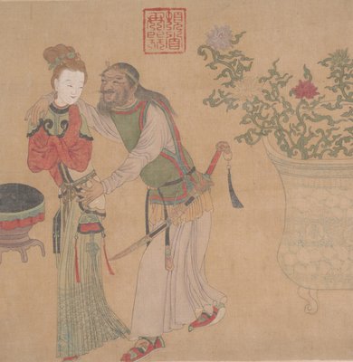 Ufficiale tartaro che corteggia la signora bionda (foglia d'album; inchiostro e colore su seta)(Tartar Officer Courting Blond Lady (album leaf; ink and color on silk))Unknown Artist |