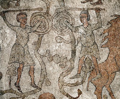 Lottatori, simbolo del Cristianesimo(Wrestlers, symbol of Christianity. Pavement of Pantaleone (or Pantaleon)Unknown artist |