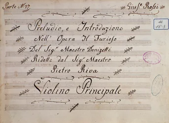 Prima pagina della partitura per violino, Il furioso all'isola di San Domingo di Gaetano Donizetti(First page of the sheet music for violin, Il furioso all'isola di San Domingo by Gaetano Donizetti)Unknown artist |