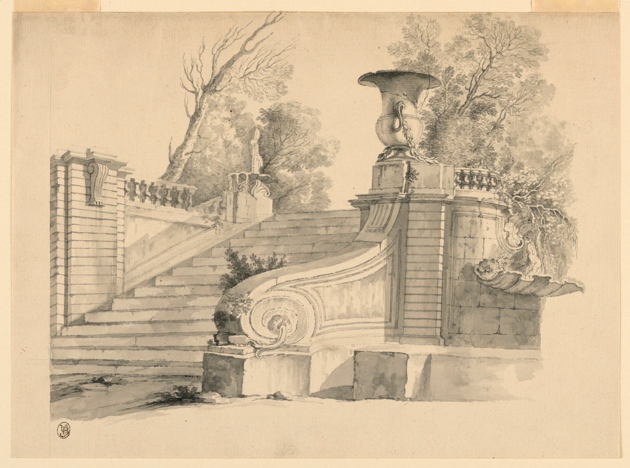 Disegno, Fantasia. Una scala in un parco, in rovina(Drawing, Fantasy. A staircase in a park, in ruins)Unknown |