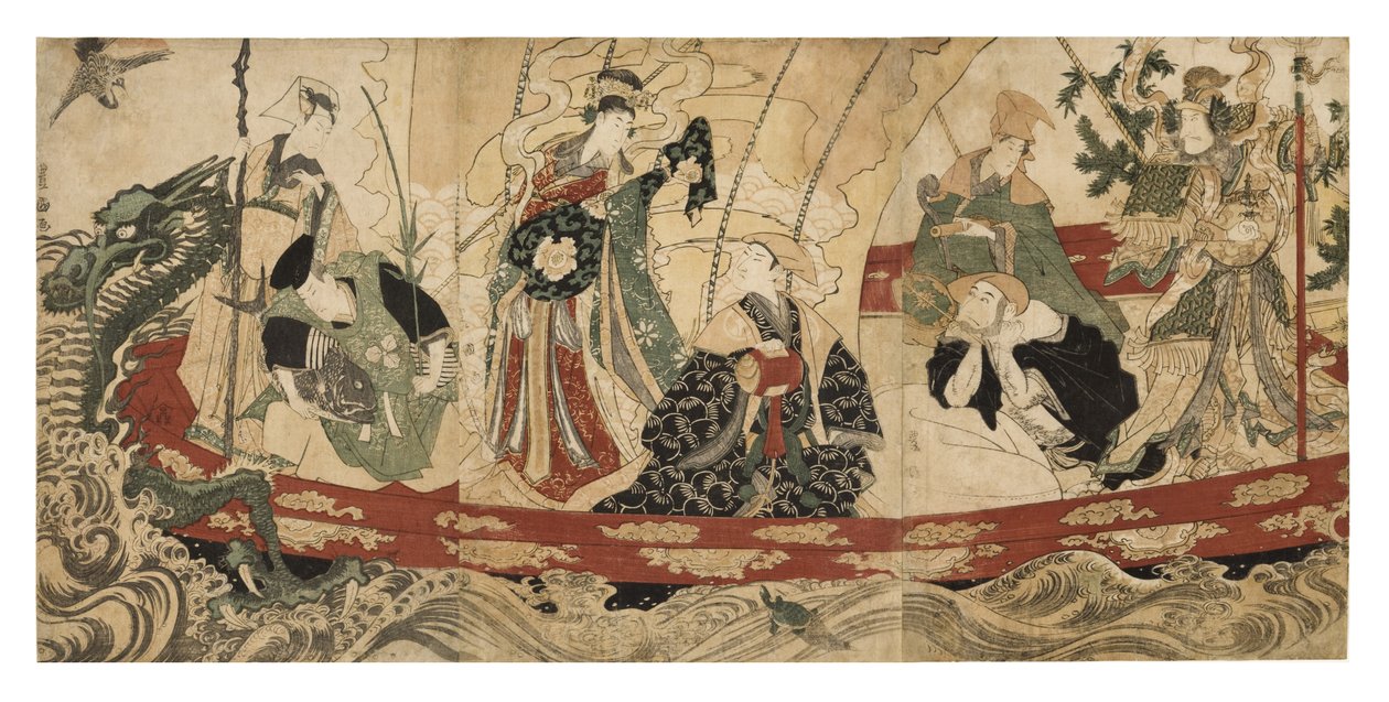 Attori come i sette dei della fortuna su una nave del tesoro, 1800-05(Actors as the Seven Gods of Fortune on a Treasure Ship, 1800-05 (woodblock))Utagawa Toyokuni |