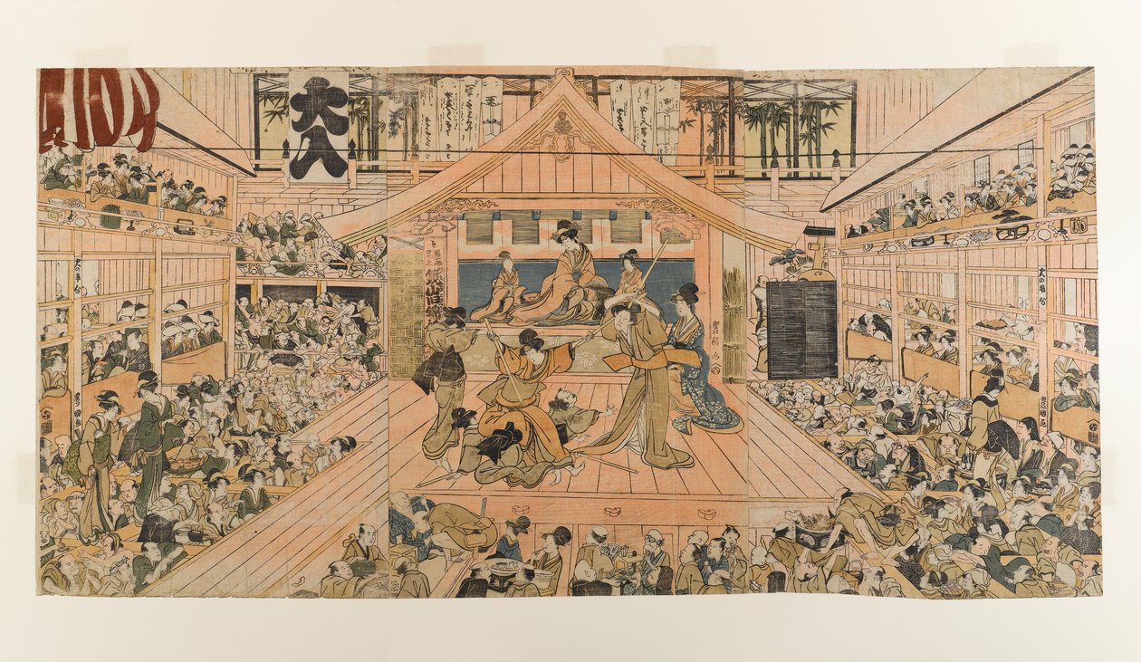 Vista interna del teatro Kabuki Kawarazaki-za, c.1800-1803(Interior View of the Kabuki Theater Kawarazaki-za, c.1800-1803 (woodblock colour print))Utagawa Toyokuni |