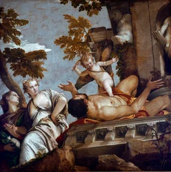 Le quattro allegorie: disillusione o inganno(The four allegories: desillusion or deception. Painting by Paolo Caliari called Paolo Veronese (1528-1588), circa 1565. Dim: 185x193cm. London, National Gallery)Veronese |