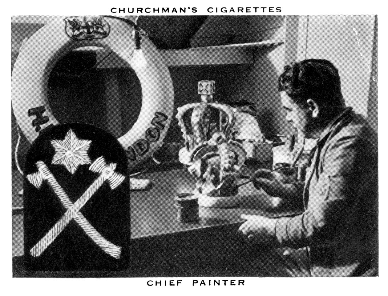 trasporto · trasporto · la gente · funzionamento · lavoro · lavoro · seduta · pittura · simbolo · concentrazione · nave · navi · occupazione · britannico · nautico · tabella · pittore · concentrazione · guerra · secolo · gran bretagna · professione · camici · thirties · mobili · corona · concetto · lifebelt · importante · marina militare · una persona · capo · artigiano · monocromo · guerra · guerra navale · nero bianco · nero e bianco · 1930s · rank · ventesimo secolo · photograph · portrait · postcard · wa ac churchman · churchman · wa ac · The Print Collector/Heritage Images |
