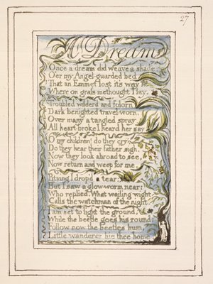Un sogno: tavola 27 da Songs of Innocence and of Experience (copia R) c.1802-08(P.124-1950.pt27 A Dream: plate 27 from Songs of Innocence and of Experience (copy R) c.1802-08 (etching, ink and wc))William Blake |