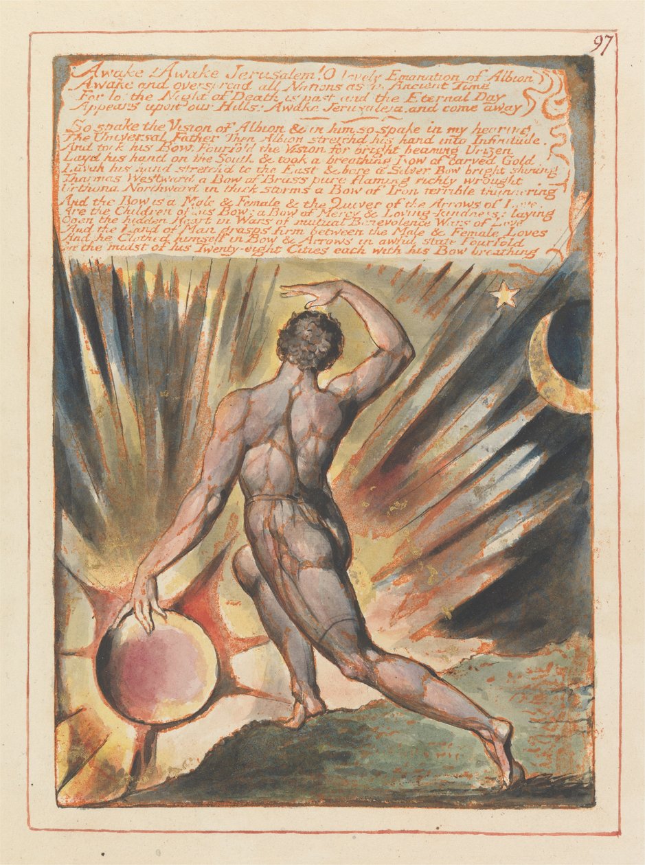Gerusalemme, Tavola 97, Svegliati! Svegliati Gerusalemme....(Jerusalem, Plate 97, Awake! Awake Jerusalem....)William Blake |