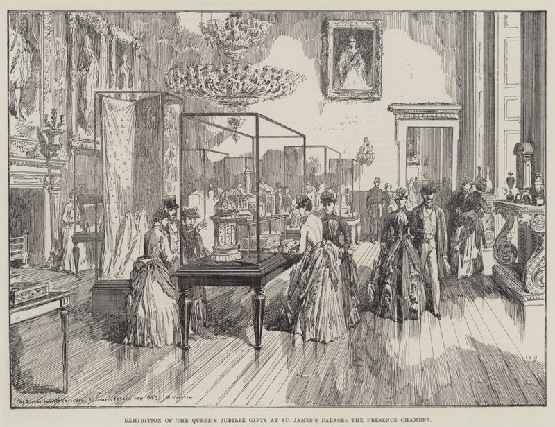 Esposizione dei doni del Giubileo della Regina al Palazzo di St James, la Sala della Presenza(Exhibition of the Queen's Jubilee Gifts at St James's Palace, the Presence Chamber )William Crimea Simpson |
