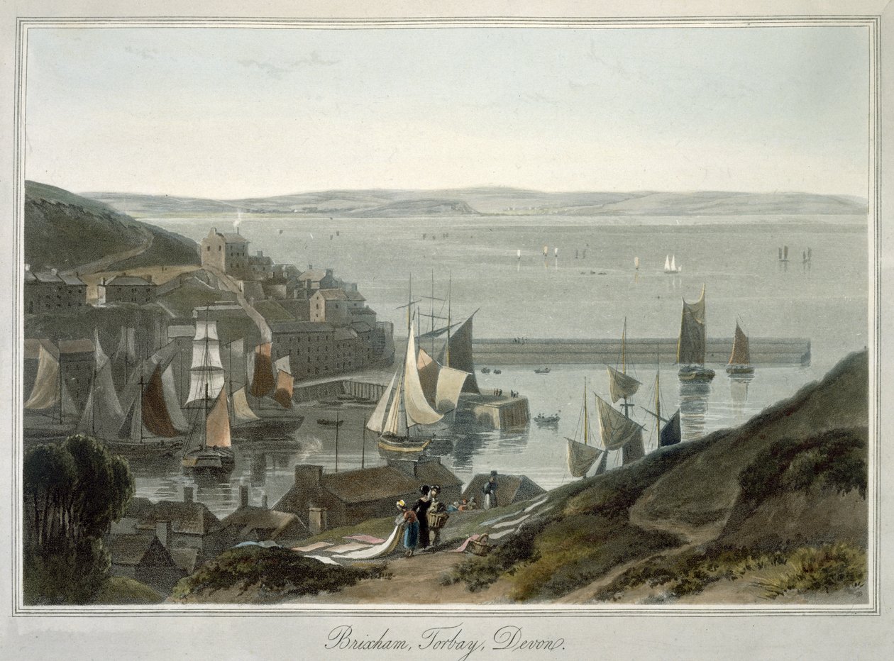 Brixham, Torbay, Devon, da Volume VIII di 'A Voyage Around Great Britain Undertaken between the Years 1814 and 1825', pubblicato 1825(Brixham, Torbay, Devon, from Volume VIII of 'A Voyage Around Great Britain Undertaken between the Years 1814 and 1825', published 1825 (aquatint))William Daniell |