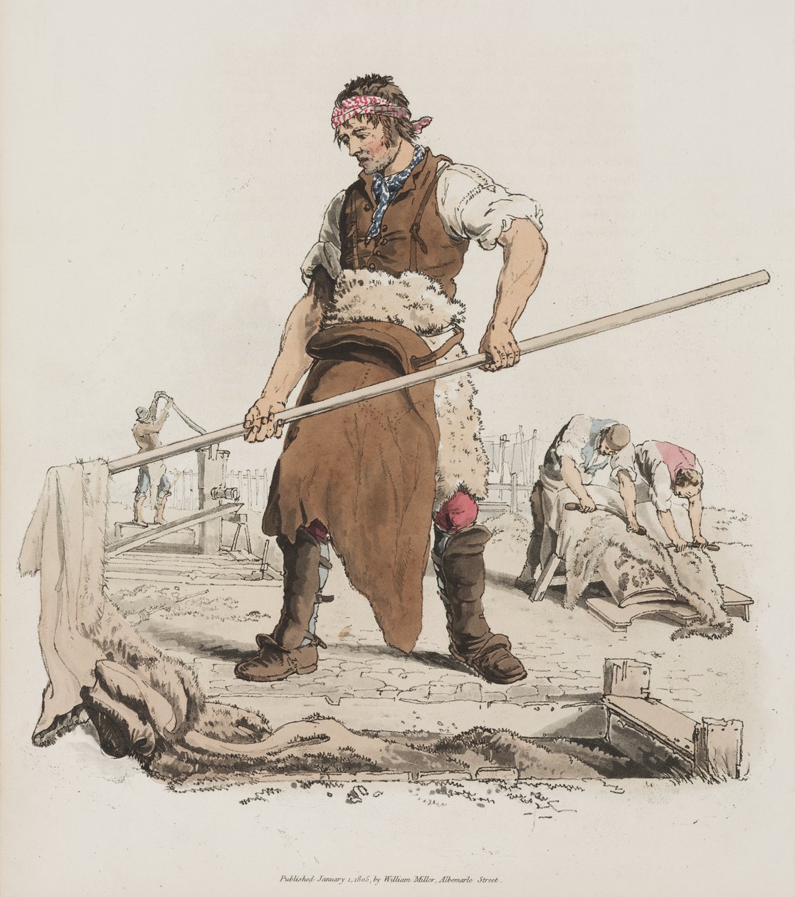 Concia, da The Costume of Great Britain(Tanning, from The Costume of Great Britain, 1805 (hand coloured aquatint))William Henry Pyne |