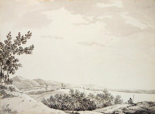 Veduta delle Colline di Rajmahal con una Sentinella in Primo Piano, c.1781(View of the Rajmahal Hills with a Sentenial in the Foreground, c.1781 (grey wash, pen and black ink and graphite on paper))William Hodges |